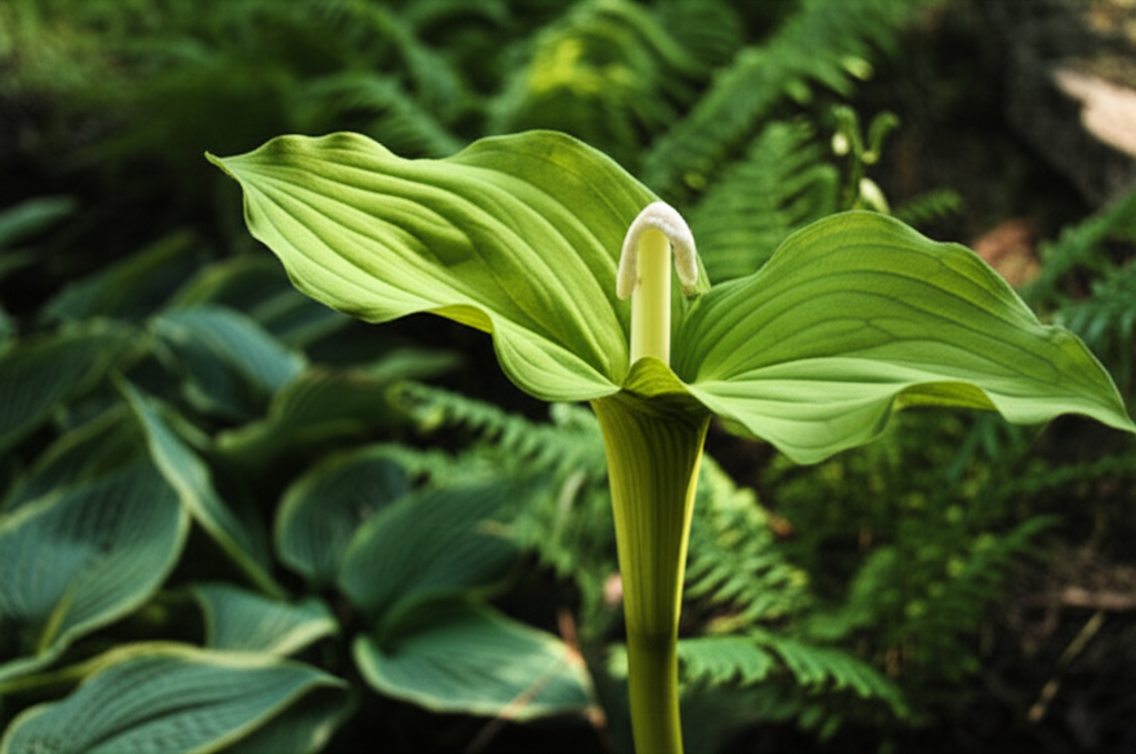 The Jack-in-the-Pulpit: More Than Just a Curious Bloom The Jack-in-the-Pulpit (Arisaema triphyllum) is a plant that immediately captures attention. Its unique, hooded spathe that encloses a club-like spadix creates an im