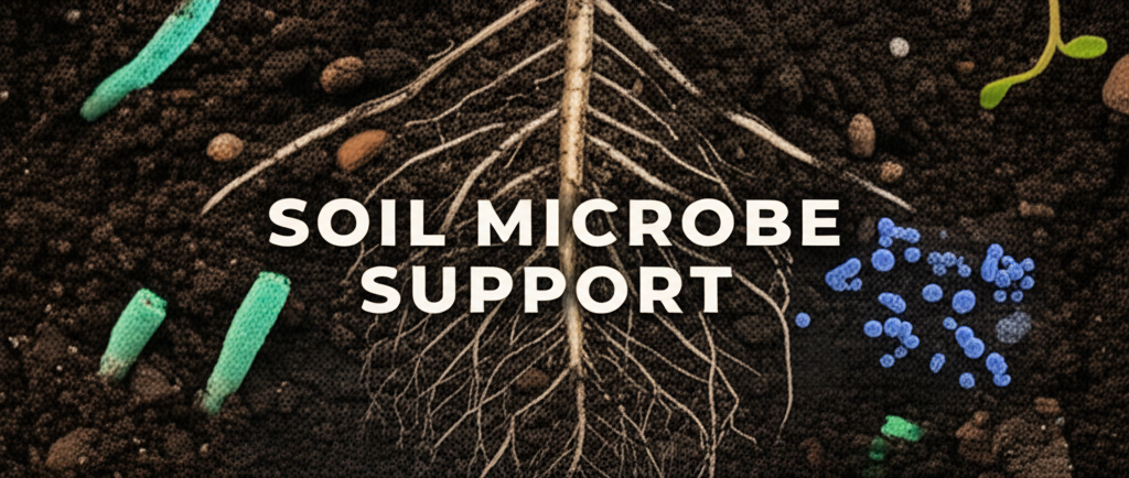 <td>Actively fosters beneficial bacteria, fungi, and other microorganisms through organic matter and specific amendments.</td>