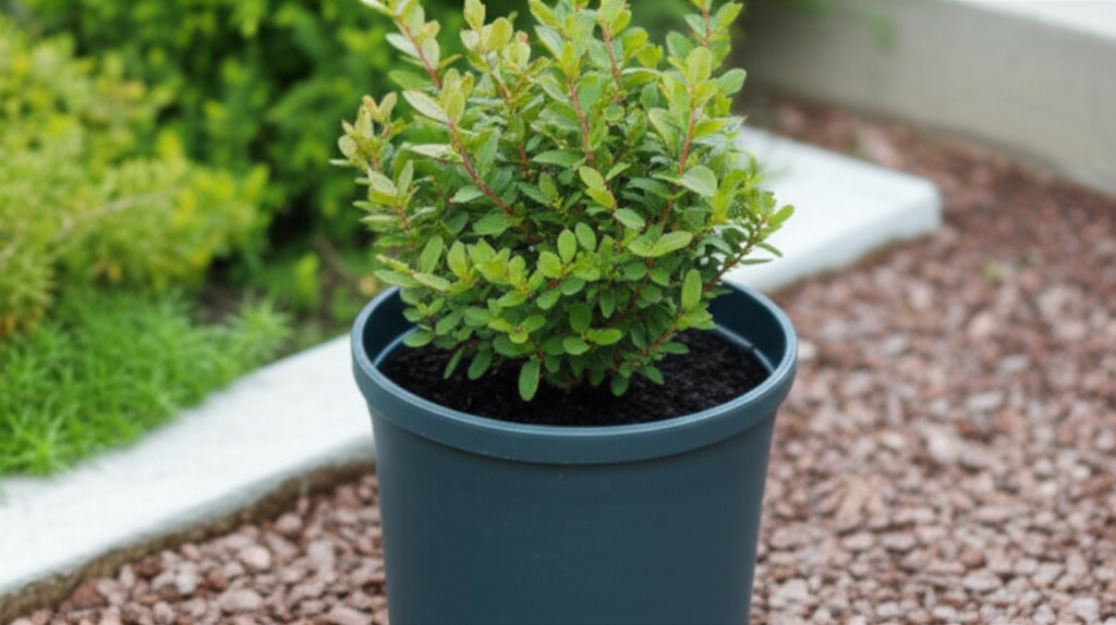 - Single Shrub in a Large Container: