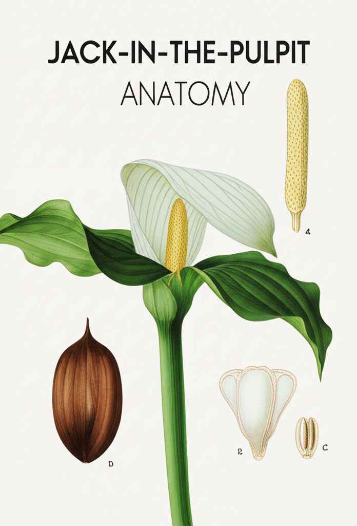 Here’s a summary of the key anatomical features and a comparison with a more typical flowering plant to highlight the Jack-in-the-Pulpit’s uniqueness.