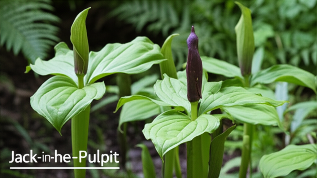 - Ferns: Various ferns, such as Lady Fern (Athyrium filix-femina), Ostrich Fern (Matteuccia struthiopteris), and Christmas Fern (Polystichum acrostichoides), complement the texture and form of Jack-in-the-Pulpit beautifully.